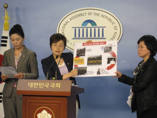 ◇“권력의 비호 아래 성장한 민간군사기업”=진상조사단은 “컨택터스가 대표적으로 권력의 비호 아래 성장한 민간군사기업”이라고 주장했다. 진상조사단이 입수한 컨택터스 소속 중간관리자 소유 수첩에서는 지난해 대구 KEC·유성기업·여주지역 4대강사업 등 각종 사회적 분쟁이 발생한 곳에 인력을 투입한 정황이 확인됐다. 진상조사단은 “컨택터스는 2006년 자본금 2억원에 종업원수 5명에서 출발한 기업인데 현재는 통상 300명~3천명까지 동원할 수 있고 자금면에서 2008~2009년 매출이 233.4%나 성장했다”며 “컨택터스는 2006년 박근혜 당시 한나라당 대선예비후보 경호 경력과 2007년 이명박 대통령을 경호한 이력을 갖고 있고 문성호 컨택터스 회장은 새누리당 중앙위원으로 활동 중으로 폭력기업 성장과 비호에 부당한 권력의 힘이 작용한 바는 없는지 철저한 조사가 필요하다”고 강조했다.