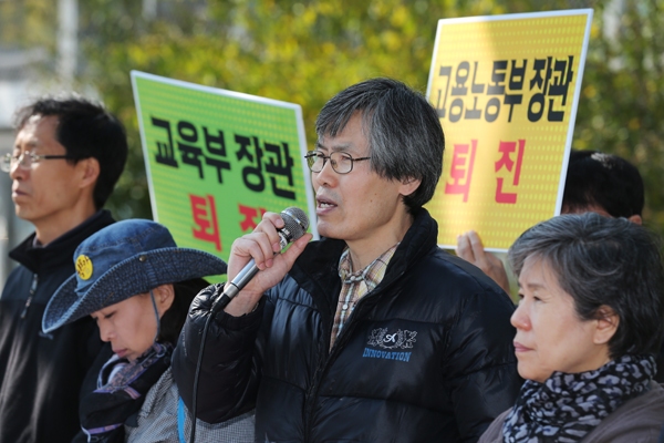 이들은 이어 “노동기본권을 위해 존재해야 할 노동부가 스스로 존재이유를 부정했다”며 “방하남 장관과 서남수 장관은 퇴진하라”고 주장했다. 해직교사 이율재씨는 “해직사유는 다양하지만 해직교사의 존재 자체가 전교조 탄압의 상징”이라며 “정부는 부당한 탄압에 맞서 왔던 해직교사들의 복직을 위해 노력하기는커녕 해직교사를 문제 삼아 전교조 전체를 탄압하고 있다”고 비판했다.