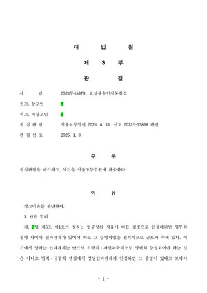 판결요지업무와 질병과의 인과관계 유무는 근로자의 건강과 신체조건을 기준으로 판단해야 한다. 설령 원고에게 기왕증으로 척추분리증이 있었더라도 그것만으로 상당인과관계를 부정할 수는 없다. 나아가 원고에게 선천적으로 척추분리증이 있었는지, 혹은 용접업무로 인한 척추의 부담이 누적되어 척추분리증이 발병한 것인지 여부도 분명하지 않다. 원고는 2012년경부터 허리부위의 상병으로 다수 치료받은 내역이 있고 2018년 3월경부터는 재활의학과, 정형외과 등에서 척추협착, 요추부 관련 상병으로 다수 진료받은 내역이 있다. 음주, 흡연의 영향력을 어