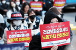 국민건강보험공단 고객센터 노동자들이 소속기관 정규직 전환 합의 이행을 요구하며 10일 하루 파업했다.공공운수노조 국민건강보험고객센터지부(지부장 김금영)는 이날 오후 강원도 원주 공단 본사 앞과 서울 중구 서울지방고용노동청 앞을 포함해 전국 5개 지역에서 동시다발 파업결의대회를 열었다.건강보험공단은 민간위탁사무논의협회의를 통해 2021년 고객센터 노동자를 소속기관 정규직으로 전환하기로 했지만 이행은 지연되고 있다. 지난달 열린 노·사·전문가 협의에서 공단은 정부 승인 당시 1천633명보다 축소된 1천615명만 전환하겠다는 안을 제시했