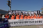 전교조(위원장 박영환)가 교사 정치기본권 보장을 촉구하며 농성에 돌입했다. 노조는 12일 오전 국회 앞에서 기자회견을 열고 “교사에게 정치적 표현의 자유를 보장하라”고 촉구했다. 노조는 이날부터 국회 앞에서 공무원·교원의 정치기본권을 보장을 요구하는 천막농성에 돌입했다. 박영환 위원장은 “교사는 민주주의 씨앗을 뿌리고