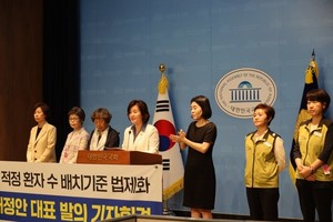 간호사 포함 보건의료 노동자의 1명당 적정 환자수 배치기준을 마련하는 법안들이 22대 국회에서 발의되고 있지만 소관 상임위원회 논의 시점이 불투명하다.이수진 더불어민주당 의원은 6일 정부에게 보건의료인력 배치기준 마련 의무를 부여하는 의료법 개정안을 대표발의했다고 밝혔다. 이 의원은 지난달 보건복지부 장관이 환자 특성과 중증도 등에 따라 간호사의 적정 업무량을 고려해 의료기관 종별·근무조별·간호단위별 간호사 배치기준을 마련해야 한다는 내용을 담은 간호법 개정안을 발의한 바 있다.이 의원이 이날 발의한 의료법 개정안도 간호법 개정안과