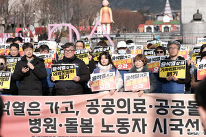 공공운수노조 의료연대본부가 국립대병원 운영비 지원 등 공공의료 강화를 위한 정부 예산 확대를 촉구했다.의료연대본부와 좋은공공병원만들기운동본부는 20일 오후 국회 앞에서 결의대회를 열고 “의료는 상품이 아니다”며 △공공의대 설립과 지역의사제 도입 △보건의료 인력 확충 △간호사 1명당 환자수 법제화 △요양시설 인력 기준 개선 등을 요구했다.박나래 의료연대본부 서울대병원분회장은 “공공병원은 수익보다 환자를 우선하지만 병상과 인력은 여전히 부족하다”며 “누구나 아플 때 걱정 없이 치료받는 나라를 위해 정부는 공공의료 강화 의지를 예산으로