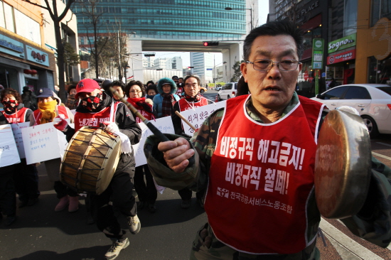 꽹과리는 다그당 북소리가 두구둥 요란하니 정월이라 마을굿이로구나. 상쇠 앞서 발 구르면 동네 사람 모여 따라 얼싸절싸. 징소리가 삐끗하니 북소리가 어긋나고 쇠소리 따라 헤매니 박자고 뭐고 난장이라. 노조 허락받아 마신 막걸리 한잔 술 탓인가, 한 잔뿐인 탓인가. 에라 모르것다. 행군이다. 군복 입은 할배가 꽹과리 두드려 진두지휘, 아차! 장구채를 들었네. 무표정은 분명 그 때문이라. 아무렴, 꽃다운 나이 오십도 훌쩍 넘은 화동 여럿이 발맞춰 출렁였다. 박자 모른데도, 무릎 시려와도 잡귀잡신은 물럿거라 당산이 저 앞이다. 소원성취 발원해 고용승계 보장하고 노조를 인정하라 소리치매 속이 다 후련타. 그 바람이 하나같이 널리 이로운 일이니 가리켜 홍익(弘益)이라. 정월 달이 덩실 밝아 널리 비추니 어둔 그 밤이 구석구석 환하더라.