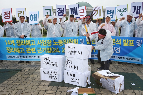 한국고용정보원에 따르면 2011년 10만3천명, 지난해 8만1천명이 경영상의 이유로 직장을 잃었다. 근로기준법에 따르면 기업이 정리해고를 하기 위해서는 긴박한 경영상의 이유가 있어야 한다. 사용자는 해고 회피를 위한 노력을 해야 한다. 아울러 합리적이고 공정한 기준으로 해고 대상자를 선별하고, 정리해고에 앞서 노조나 근로자측과 성실하게 협의해야 한다. 하지만 근기법상 이런 요건은 무용지물이 된 지 오래다.