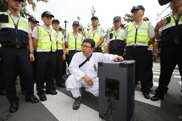 지난 10일부터 무기한 단식농성을 벌이고 있는 쌍용자동차 해고자와 노동계 인사들이 12일 오전 청와대 인근 청운효자동주민센터 앞에서 기자회견을 열어 박근혜 대통령에게 국정조사 실시와 정리해고자 복직을 촉구했다.