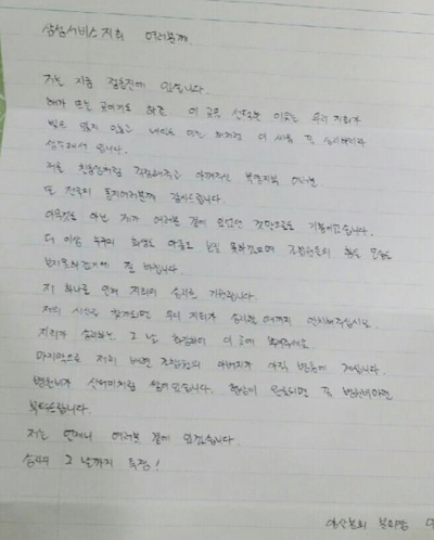고인은 지회와 가족·친구들에게 보내는 자필유서<사진>를 남겼다. 고인은 지회에 보내는 유서에서 “더 이상 누구의 희생도 아픔도 보질 못하겠으며 조합원들의 힘든 모습도 보지 못하겠기에 절 바칩니다. 저 하나로 인해 지회의 승리를 기원합니다”라고 밝혔다.