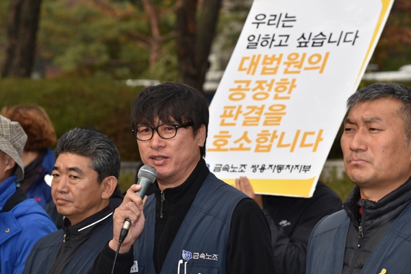 11일 오전 서울 서초구 대법원 정문 앞. 이날로 정리해고 2천일을 맞은 쌍용자동차 해고노동자들이 마이크를 잡았다. 해고자들로서는 내키지 않은 기자회견이었지만 “그래도 뭔가 해야 하지 않겠느냐”는 주위 권유로 만들어진 자리였다.