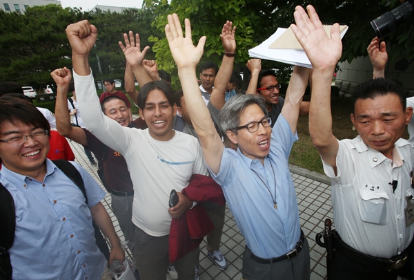 ◇“우리가 해냈다” 이주노동자의 눈물=이날 대법원에서 판결이 끝난 뒤 이주노조 조합원들은 눈물을 감추지 못했다. 우다야 위원장은 “이 순간을 간절히 기다려 왔다”며 “앞으로 사업장에 가서 당당히 많은 이주노동자를 조직할 수 있는 길이 열렸다”고 밝혔다.