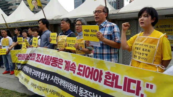 4·16세월호참사 특별조사위원회(위원장 이석태) 단식농성에 노동·시민단체들의 동참이 잇따르고 있다. 이석태 위원장은 정부에 의해 강제로 종료 된 특별조사위 활동기간 보장을 요구하며 지난달 27일부터 서울 광화문광장에서 단식농성에 들어간 바 있다.