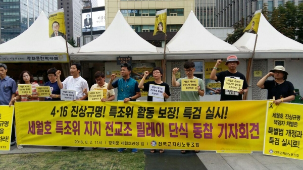 전교조는 “세월호 인양 후 제대로 조사하려면 4·16세월호참사 진상규명 및 안전사회 건설 등을 위한 특별법(세월호진상규명법)을 개정해 특별조사위 활동기간을 보장해야 한다”며 “국회는 특별조사위가 제출한 특별검사 요청안을 즉각 처리하라”고 촉구했다. 전교조 교사들은 특별조사위 지지 릴레이 단식농성에 돌입한다.