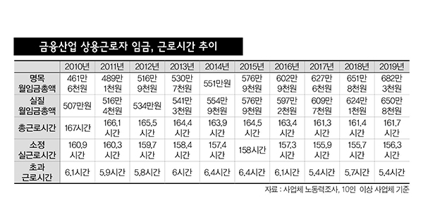 금융권 정규직 노동시간 ‘167시간→161.7시간’으로