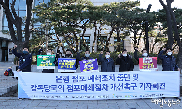 노조는 효율적으로 점포 폐쇄를 제어할 수 있는 수준의 규제안 마련을 촉구하는 개선 요구서를 금감원에 전달했다.