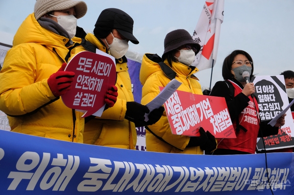 한국노총과 노동법률단체는 일제히 “중대재해가 발생할 경우 경영책임자에 대한 하한선이 있는 자유형이 있어야만 산업재해에 대한 경각심을 높일 수 있고 대기업의 경우 매출액 또는 수입액에 비례한 징벌적 벌금이 반드시 필요하다”며 징벌적 벌금형에 하한 규정을 반드시 명시해야 한다고 목소리를 높이고 있다.