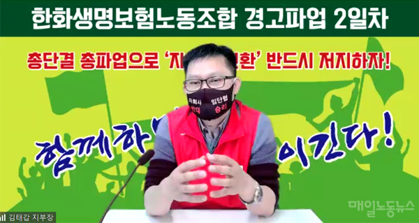 한화생명 노동자들이 온라인 파업을 했다. 이들은 회사의 자회사 설립과 강제 전출 시도에 반대하고 있다.