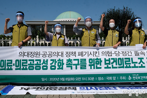 보건의료노조는 “의사 집단 진료거부 사태로 불거진 이번 사태의 해결과 마무리는 국시 재응시가 아니라 의대 정원 확대와 공공의대 설립의 추진이어야 한다”며 “부족한 의사인력과 양극화한 의사배치를 해결할 제도개선 의지를 보여야 국민들이 납득할 수 있다”고 지적했다.