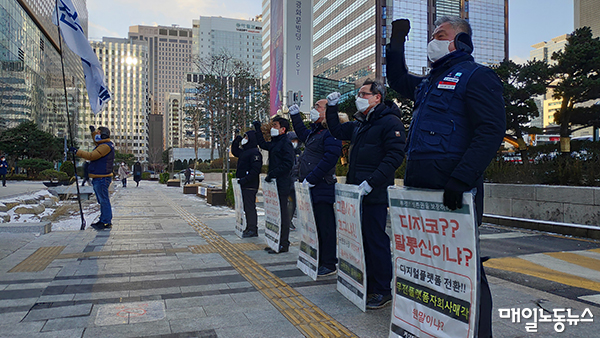 노조는 반발했다. 박갑진 위원장은 “주총 현장에서 매각 부당성을 강조했지만 받아들여지지 않았다”고 설명했다. 소액주주 자격으로 주총에 참여한 노조는 반대 설명 이후 주총장을 빠져나왔다. 안건은 44.85% 지분을 가진 KT쪽의 주도로 이변 없이 원안대로 가결됐다.