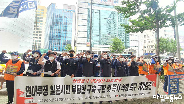 경남지역 노동자들이 한국산연을 일방적으로 폐업한 일본 산켄전기를 규탄하고, 한국산연 문제 해결을 주장한 일본 현지 집회에서 시민을 체포한 일본 경찰에 석방을 촉구했다.