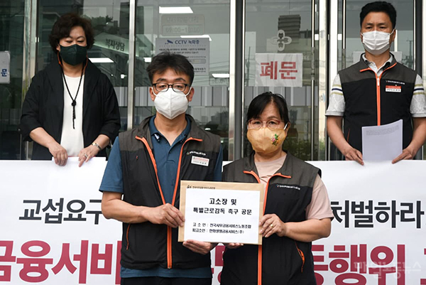 한화생명 보험설계사들이 한화생명금융서비스를 부당노동행위로 고발했다. 사무금융노조와 노조 보험설계사지부 한화생명지회(지회장 김준희)는 15일 오전 서울지방고용노동청 서울남부지청 앞에서 기자회견을 열고 한화생명금융서비스를 교섭 해태에 따른 부당노동행위로 고발하고 특별근로감독을 요청했다.