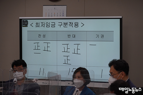 최저임금을 업종별로 차등해 적용하자며 사용자측이 낸 안건은 반대 15표를 받아 부결됐다. 찬성 11명, 기권이 1명이었다. 최저임금위는 노·사·공익위원 각 9명씩 모두 27명으로 구성된다. 공익위원 중 적어도 2명은 차등 적용에 찬성하며 사용자측 손을 들어줬다고 볼 수 있다. 현 공익위원 다수는 2020년(2.9%)·2021년(1.5%) 최저의 인상률을 결정한 주인공이다.