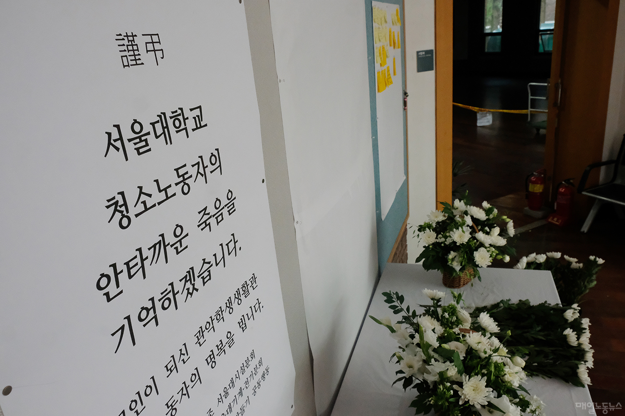 지난달 26일 서울대 기숙사 청소노동자 휴게실에서 이아무개씨가 사망한 채로 발견됐다. 서울대 인권센터가 진상조사를 시작했지만 유가족과 민주일반노조는 ‘셀프 조사’라며 거부했다. 서울대 인권센터에는 운영위원으로 고인의 근무지 책임자였던 기숙사 관장 등이 포함돼 있다.