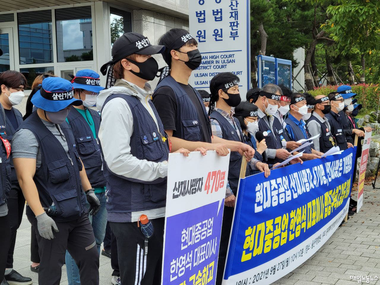 중대재해기업처벌법 제정 울산운동본부는 재판에 앞서 이날 오전 울산지법 앞에서 기자회견을 열고 “더 이상 현대중공업이 노동자의 무덤이 아닌 안전한 일터가 될 수 있도록 법인과 한영석 대표에 대한 엄중한 처벌이 이뤄져야 한다”고 주장했다.