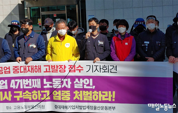 본부는 “현대중공업은 사고원인이 산업안전보건법 위반인 것이 분명한데도 ‘작업 중 사고가 아니다. 사내에서 발생한 교통사고’로 몰아가며 책임을 회피하려 한다”며 “현대중공업 중대재해 책임자인 한영석 대표이사를 구속하고 엄중 처벌하라”고 요구했다.