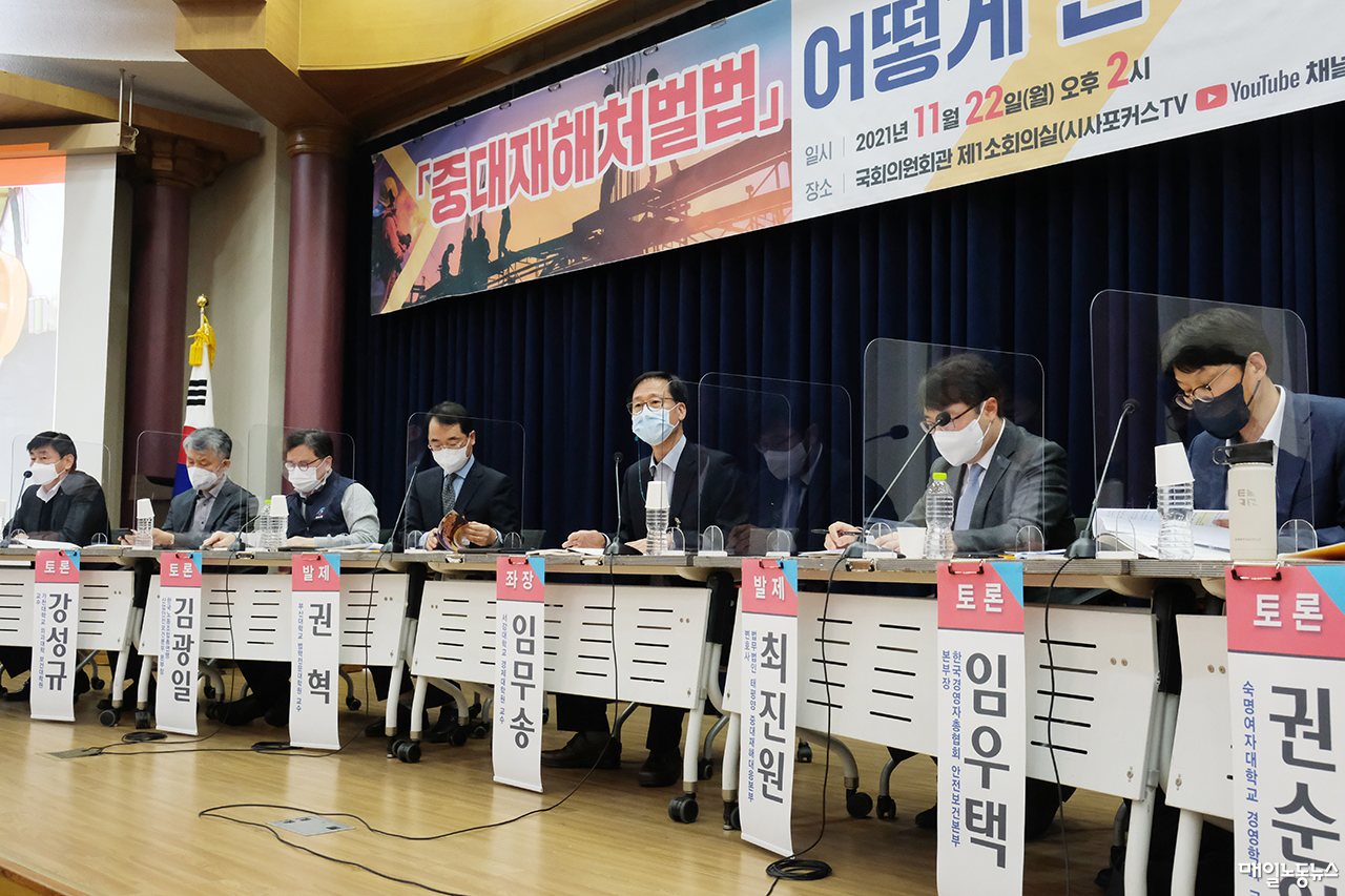 22일 오후 국회 의원회관에서 열린 ‘중대재해처벌법 어떻게 안착시킬 것인가’ 토론회에서 권혁 부산대 법학전문대학원 교수는 “수사 과정에서 발생하는 소모적 비용이 클 것”이라고 전망했다. 권 교수에 따르면 중대재해처벌법은 ‘경영책임자용 산업안전보건법’이다. 안전공학 중심으로 설계된 산업안전보건법은 안전보건 전문가의 영역이라면 중대재해처벌법은 경영책임자가 안전을 위해 무엇을 할 수 있고, 무엇을 해야 하는지를 규정하고 있는 법이기 때문이다. 권 교수는 “중대재해처벌법이 엄중한 형사처벌 규정을 두고 있어 구속요건이 더 명확해야 하는데 모호하다는 문제가 있다”면서도 “계량적 명확성과 개념적 명확성을 을 분명히 할 필요가 있다. 경영책임자의 의무를 포괄적으로 규정하고 있는 중대재해처벌법은 개념적 명확성 차원에서 접근해야 한다”고 주장했다. “중대재해처벌법은 경영책임자의 안전보건 의무가 왜 제대로 작동하지 않는가라는 의문을 던졌다는 점에서 의미가 있다”고 평가한 그는 “이 법의 메시지는 처벌이 아니라 예방에 중점을 둬야 한다”고 강조했다.