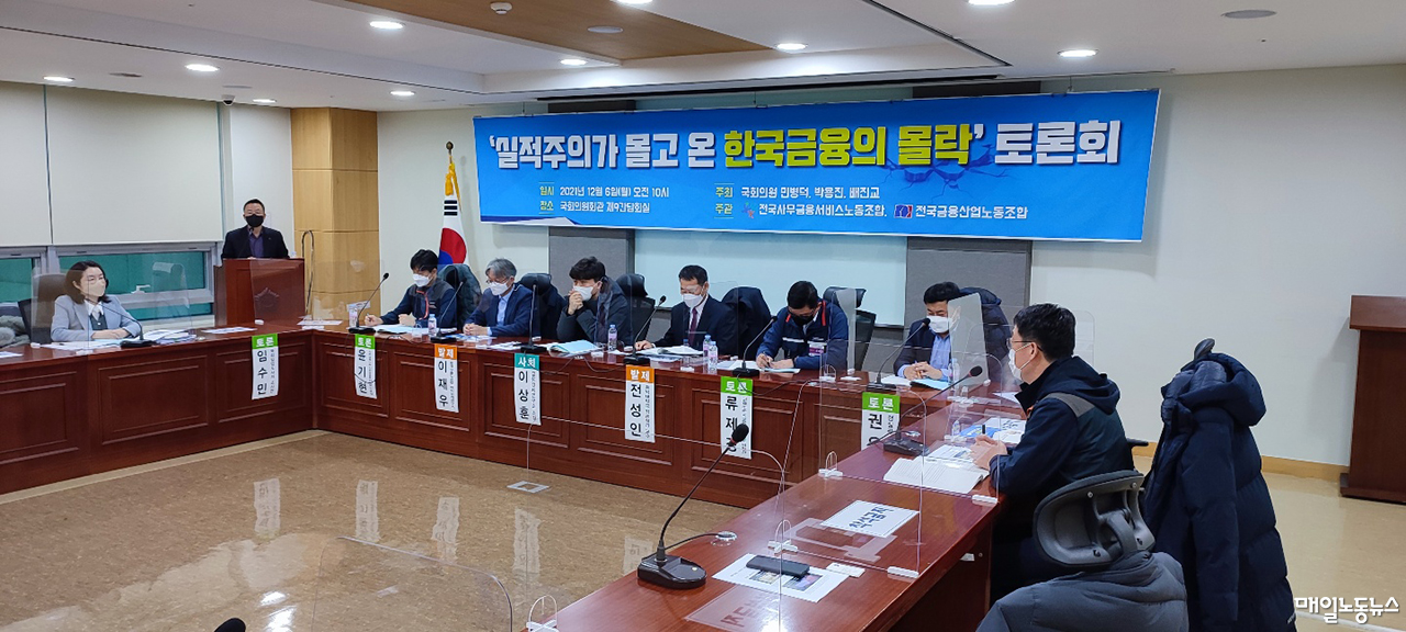 이런 실적주의가 구조적으로 악영향을 끼치는 대상이 노동이다. 토론자로 참여한 류제강 금융노조 KB국민은행지부 위원장은 “공공성과 도덕성을 요구받는 은행업이 수익성만 반영해 점포 폐쇄를 감행해 연령과 지역별 금융격차가 더욱 심화한다”며 “이를 규율하겠다며 만든 금융당국의 은행권 점포 폐쇄 공동절차는 실효성이 없어 법률 수준의 강제성을 도입해야 한다”고 설명했다.