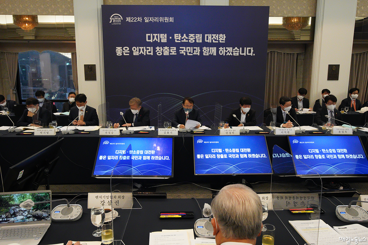 대통령직속 일자리위원회가 22일 오전 서울 중구 프레스센터에서 김용기 부위원장 주재로 개최한 22차 회의에서 정부는 이런 내용의 ‘공정한 노동전환 지원방안 추진현황’을 보고했다.