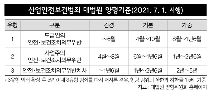 특히 이번 선고가 상향된 대법원의 양형기준에 턱없이 미치지 못한다고 비판했다. 대법원은 지난해 7월 산업안전보건범죄 양형기준과 관련해 안전보건조치의무 위반으로 근로자가 사망한 경우 가중영역을 ‘징역 10월~3년6월’에서 ‘징역 2년~5년’으로 대폭 올린 바 있다. 또 죄질이 좋지 않은 특별가중영역에 속하면 징역 7년까지 선고를 권고했다.