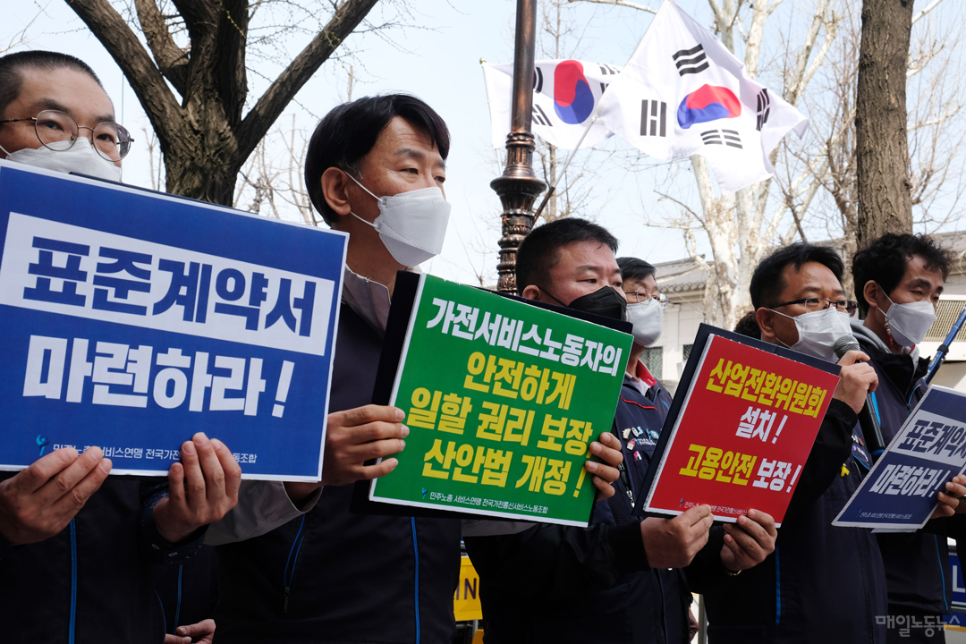 노조는 새 정부에 서비스산업전환위원회 설치를 비롯해 △스마트홈 산업전환에 따른 고용안정 대책 마련 △방문서비스 현장에 맞는 산업안전보건법 개정 △특수고용 노동자에게 직장의료보험 적용 및 표준계약서 마련을 요구했다.