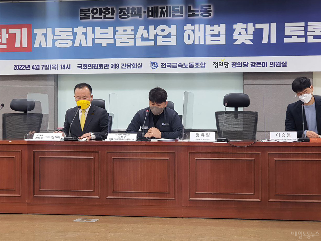 금속노조와 강은미 정의당 의원은 7일 오후 국회의원회관에서 ‘불안한 전환기 정책·배제된 노동 자동차부품산업 해법 찾기 토론회’를 열었다.