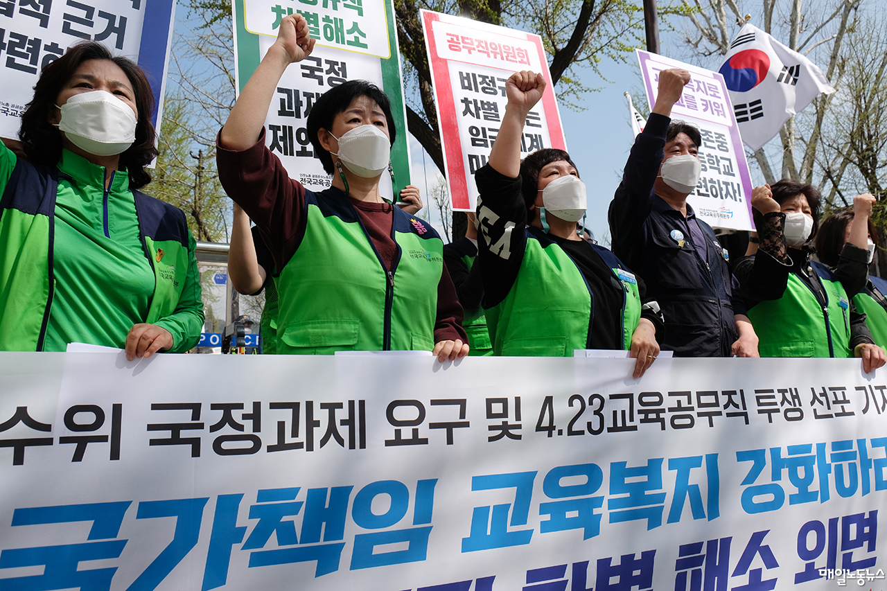 교육공무직 노동자들이 윤석열 대통령 당선자에게 교육 분야 비정규직 차별 해소를 국정과제에 담아야 한다고 요구했다.