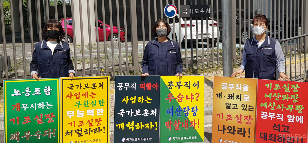 노조는 2일 오전 세종시 국가보훈처 앞에서 릴레이 피켓시위를 하고 이같이 요구했다. 이들은 앞으로 2주간 릴레이 피켓시위를 하면서 국가보훈처의 응답을 기다리겠다는 계획이다.