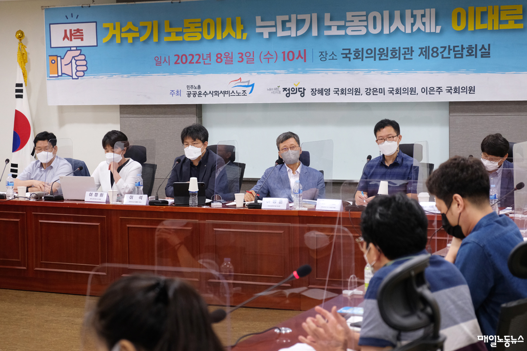 공공운수노조는 3일 오전 국회의원회관에서 ‘사측 거수기 노동이사, 누더기 노동이사제 이대로 좋은가?’ 토론회를 열었다. 토론회는 강은미·이은주·장혜영 정의당 의원이 함께 주최했다.