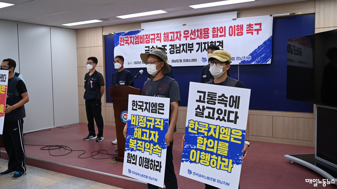 금속노조 경남지부는 5일 오후 경남도청 프레스센터에서 기자회견을 열고 이같이 주장했다. 이날 기자회견에는 노조 한국지엠창원비정규직지회와 한국지엠부품물류비정규직회가 함께했다.
