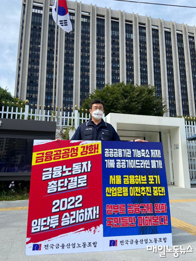 노조는 매일 오전 11시30분부터 오후 1시까지 서울시 종로구 금융위원회와 영등포구 금융감독원 앞에서 1인 시위를 시작했다고 26일 밝혔다.