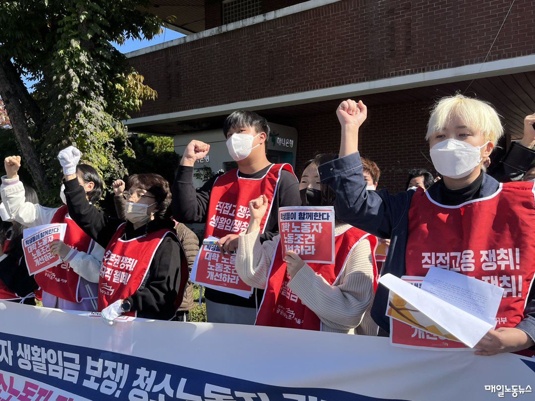 “청소노동이 중단된 지 단 하루 만에 학교는 난장판이 됐습니다. 이는 청소노동이 우리 대학과 사회의 필수노동임을 증명합니다. 청소노동자의 시급 400원 인상 요구는 노동의 귀중함을 생각하면 겸손한 수준입니다. 하지만 총장님은 ‘최저임금보다 높게 주고 있으니 감사하게 생각하라’며 혐오와 차별을 노골적으로 드러냈습니다. 청소노동자의 노동은 최저가 노동이 아닙니다.”