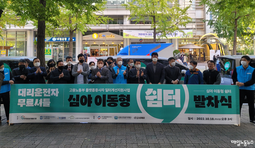 한국플랫폼프리랜서노동공제회(이사장 김동만)와 한국대리운전협동조합·한국노총전국연대노조는 18일 오후 서울 여의도 한국노총 앞에서 셔틀 발차식 행사를 개최했다.