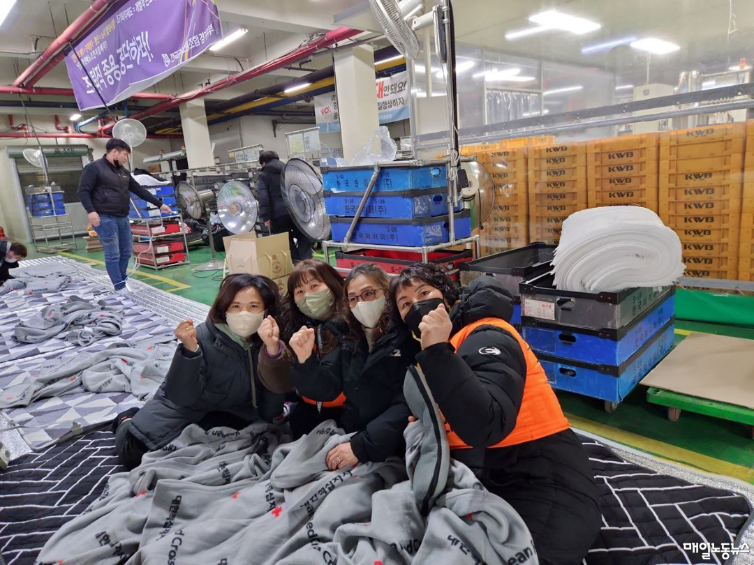 한국와이퍼가 앞서 공지한 청산 개시일은 1월8일로, 사측은 같은달 2일 사업장 폐쇄를 예고했다. 그런데 예정일보다 이른 지난달 30일 새벽 사업장 대부분의 문을 폐쇄했다. 조합원 180여명은 2일 폐쇄되지 않은 문으로 출근투쟁을 진행했다. 이 중 40여명은 현장에 남아 농성에 들어갔다. 이날부터 조합원 30명씩 주·야간조를 꾸려 현장을 지키고 있다.