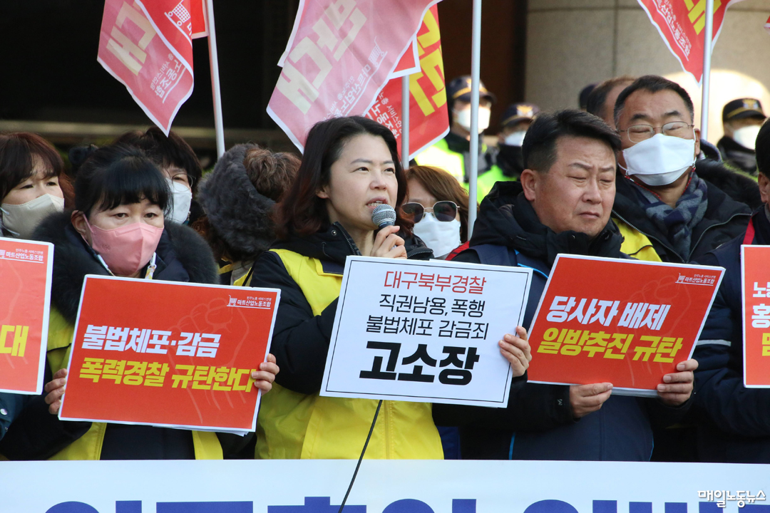 노조는 당시 연행됐던 조합원 가운데 3명을 대표고소인으로 해 대구북부경찰서 경찰 7명을 불법 체포·감금, 직권남용, 폭행 등 혐의로 대구지검에 고소했다고 4일 밝혔다.