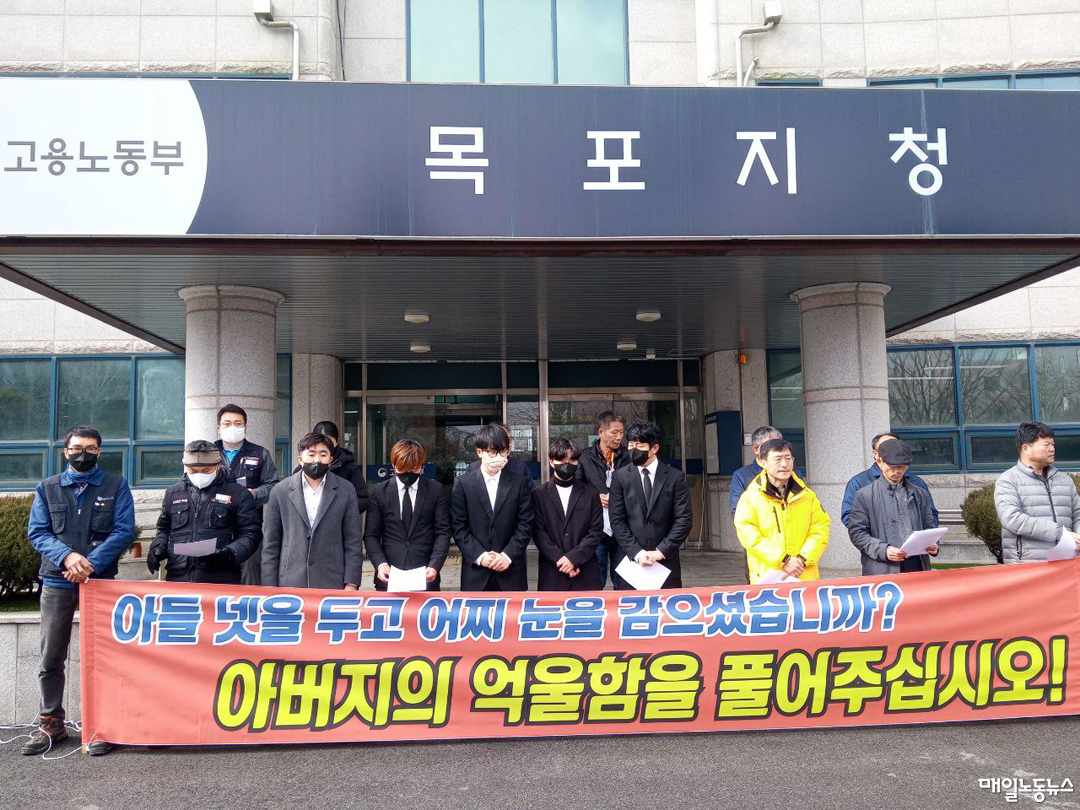 유가족쪽은 같은날 오전 고용노동부 목포지청 앞에서 기자회견을 열고 “고인의 사망 이전에도 현대삼호중공업 내에서는 유사한 사고들이 있었던 것으로 파악되고 있음에도 현대삼호중공업과 협력업체는 이번 사고를 개인 문제로만 간주하고 책임을 회피하고 있다”며 “위험성을 몰랐고 위험성이 밝혀지지 않았으니 책임도 없다는 논리”라고 비판했다. 이어 “노동부는 현대삼호중공업을 즉시 특별근로감독하라”고 촉구했다.