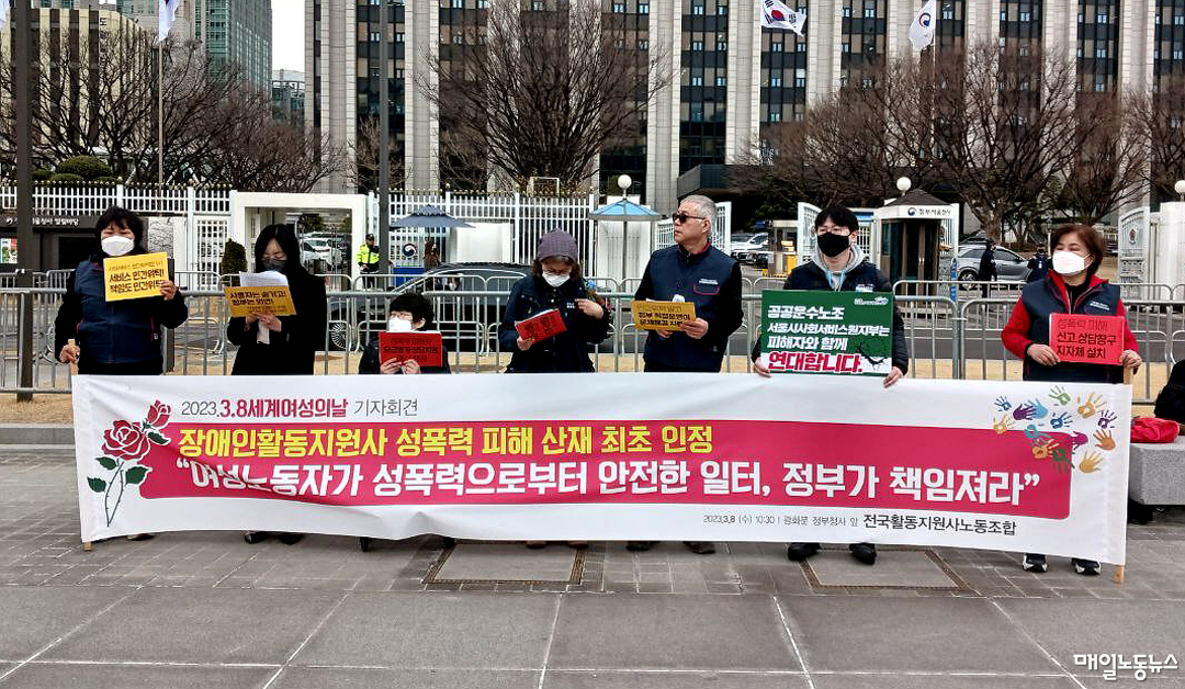 전국활동지원사노조(위원장 김영이)는 8일 오전 정부 서울청사 앞에서 기자회견을 열고 “성폭력을 당해 긴 고통의 시간을 보내고 있는 피해자에게 위로가 되고, 활동지원사들에게 용기를 주는 소식이기를 바란다”고 밝혔다.