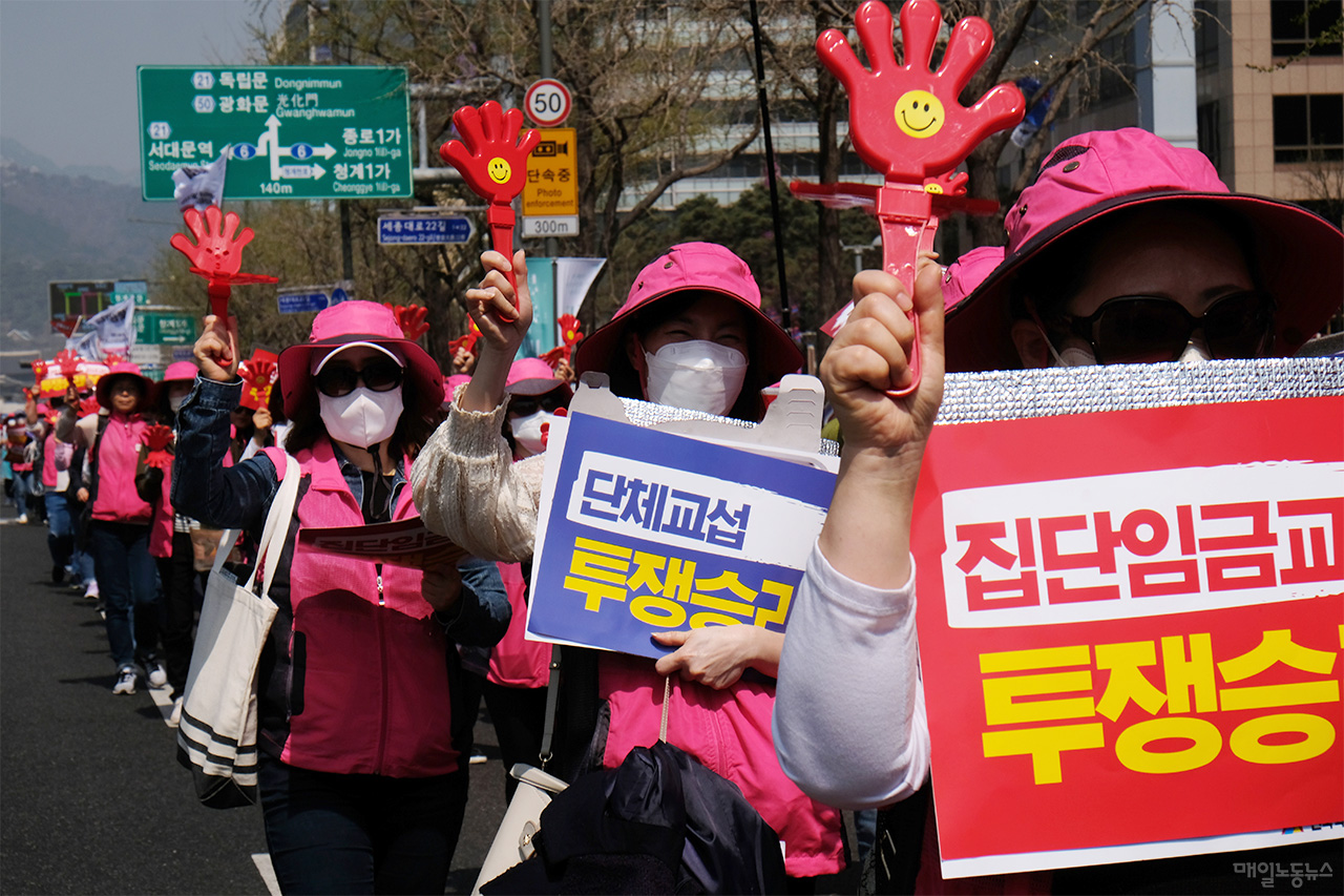 연대회의 소속 3개 노조(학교비정규직노조·공공운수노조 교육공무직본부·여성노조)는 지난달 31일 신학기 총파업을 벌였다. 학교비정규직노조는 서울 용산 대통령실 앞에서 출발해 서울시청까지 행진했다. 교육공무직본부와 여성노조는 전국 시도교육청 앞에서 지역별 집회를 열고 파업에 동참했다. 이날 교육공무직 16만9천128명 중 2만3천516명이 파업에 참여한 것으로 집계됐다. 교육부는 전국 3천293개교에서 급식에 차질을 빚었다고 밝혔다. 급식을 제공하는 학교 4곳 중 1곳에서 파업으로 대체식이 나왔다.