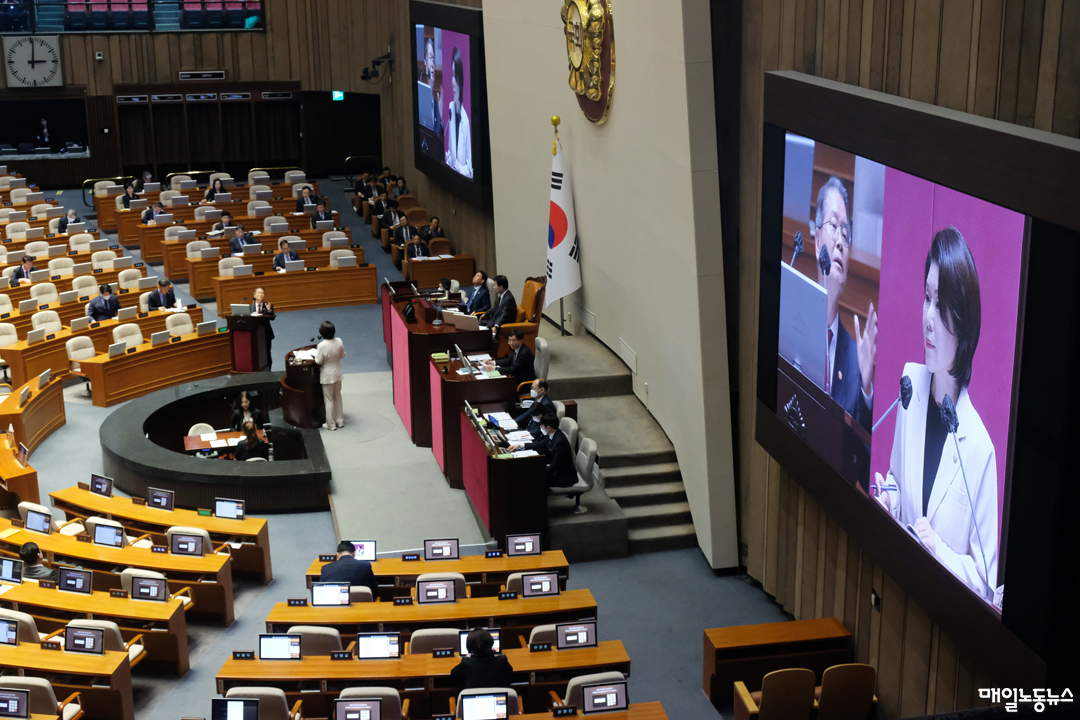 이날 본회의에서는 주 최대 69시간(주6일 기준)까지 일할 수 있는 근로시간 제도 개편안에 대한 질의도 이어졌다. 정부는 실근로시간을 줄이는 방안이라는 취지를 강조했다.