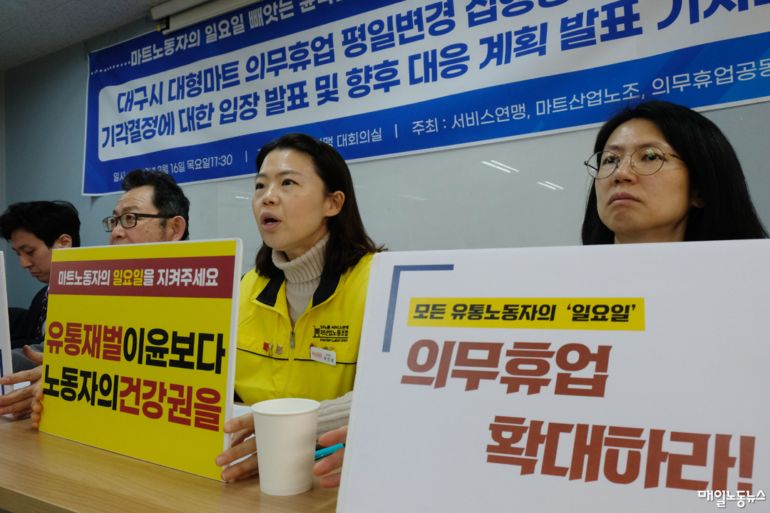대구지역 대형마트 의무휴업 평일변경이 시행된 지 두달이 지났다. 일요일 휴무가 사라진 마트노동자들은 사회가 움직이는 일반적인 사이클과 본인의 스케줄이 일치하지 않는 데서 관계 소외 등 고충을 겪고 있는 것으로 나타났다. 청주지역도 조만간 평일변경을 시행할 것으로 보이는 가운데, 12일 <매일노동뉴스>가 2012년 의무휴업 도입 이후 11년 만에 일요일이 사라진 대구지역 마트노동자의 목소리를 들어봤다.