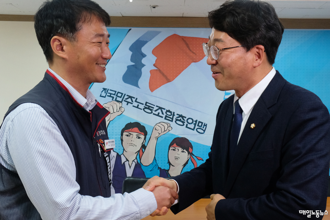 강 의원은 “노동자들의 피눈물과 비정규 노동자 설움을 잊지 않고, 국회에서 노동자의 목소리를 분명히 대한민국 국정에 반영할 수 있도록 하겠다”며 “그 길에 민주노총도 함께 힘을 모아주시고 같이 해 나갔으면 좋겠다”고 말했다.