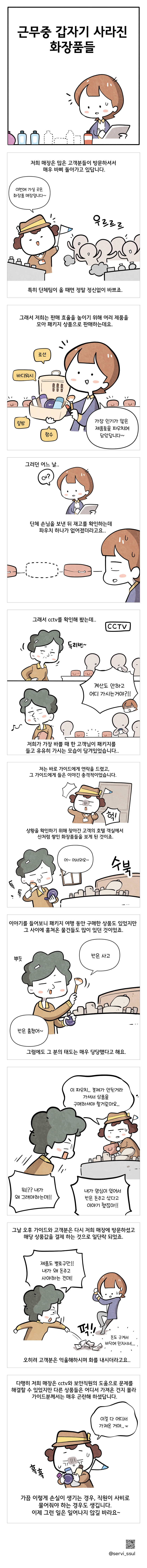 이번 사연은 많은 관광객들로 바빴던 시기 일어난 도난 사건이다. 지금도 면세점과 백화점 판매노동자들은 인력 부족과 높은 업무 강도로 끼니를 거르거나 휴식시간을 제대로 사용하지 못하는 실정이다. 고객 응대와 각종 업무로 분주한 와중에 발생한 분실·도난 등의 손실을, 해당 직원의 사비로 보상하는 경우도 더러 있다고 한다. 판매노동자 개인에게 사고의 책임을 묻기 전에, 매장마다 충분한 인원 배치와 철저한 관리가 되는지 우선 살펴야 할 때다.