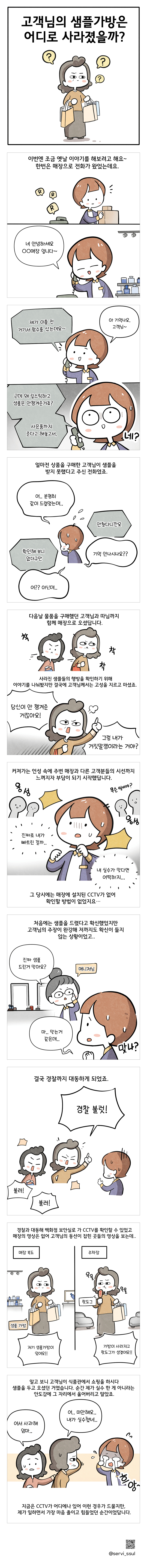 [작가의 말] 이번 사연은 웹툰에서 하루에 모두 벌어진 사건으로 나오지만, 실제로는 CCTV 녹화본을 확인하고 억울한 누명을 벗기까지 일주일이라는 시간이 걸렸다고 한다. 그 사이 판매노동자가 받았을 스트레스, 심적 고통은 이루 말할 수 없을 것이다. 자신이 가진 그날의 기억을 계속해서 의심했을 것이다.